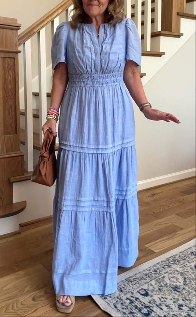 CLEARANCE SALE🔥100% Linen Tiered Maxi Dress$39.99 USD$79.98 USD