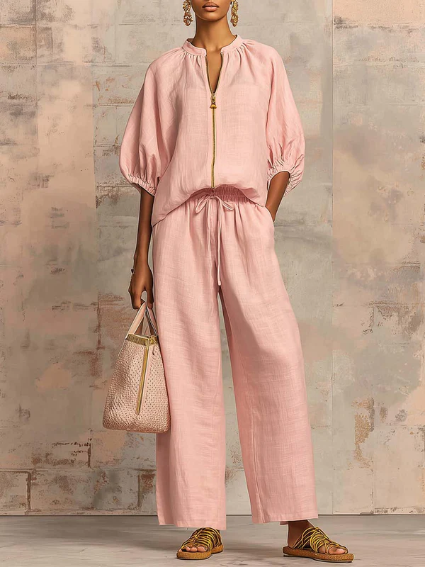 Upgrade your wardrobe with this linen-cotton two-piece set featuring a relaxed button-down shirt and wide-leg pants. Designed for modern women who appreciate comfort without sacrificing style, this set brings a timeless, laid-back elegance that transitions seamlessly from morning coffee to weekend outings.Breathable, soft, and easy to wear — the perfect combination of casual comfort and elevated style.