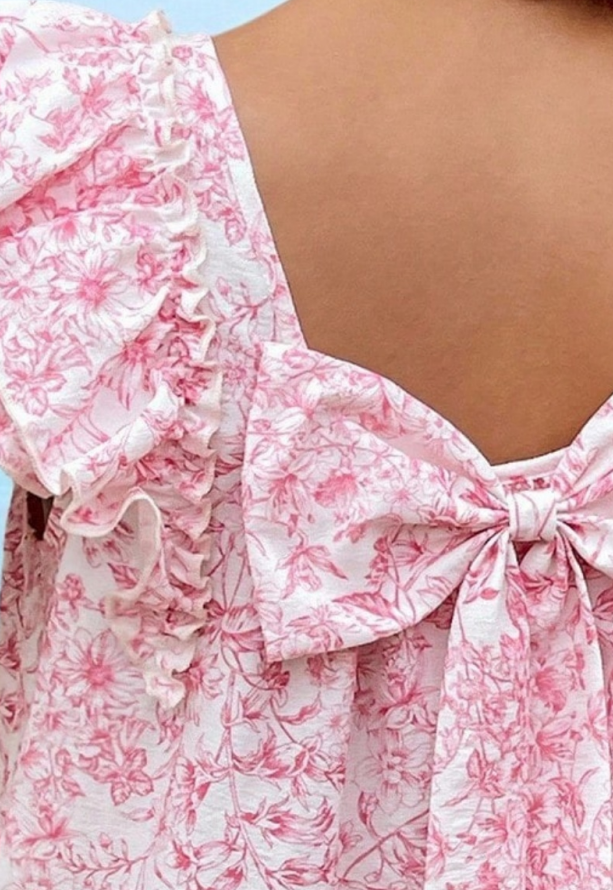 👚 Short-Sleeve Top with Back Bow Tie and Ruffles
