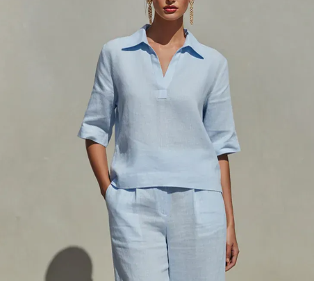 Lightweight linen-blend outfits are especially popular for warm weather because they are breathable and comfortable for long wear.