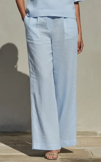 Linen fabric naturally possesses a graceful drape, ensuring the trousers maintain a crisp, structured silhouette without appearing limp.